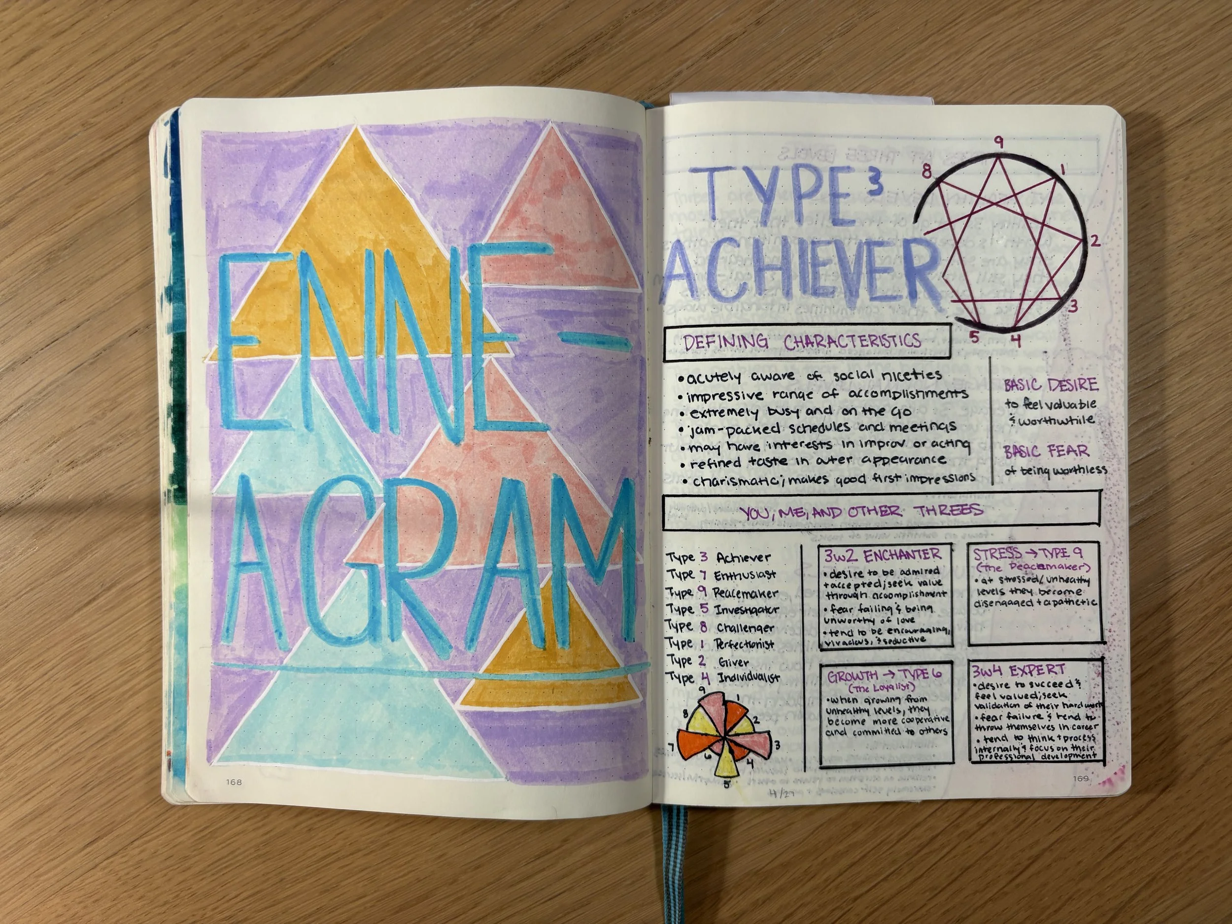 I loved that bullet journaling allowed me to practical, creative, and spontaneous. Each year, I would start with a fresh notebook. I utilized this notebook for everything: planning my day, writing notes, setting goals, recording my life and feelings, creative expression, keeping track of time, and more. Sometimes my journal entries looked pretty, but more often it did not. These are some of the pretty entries.