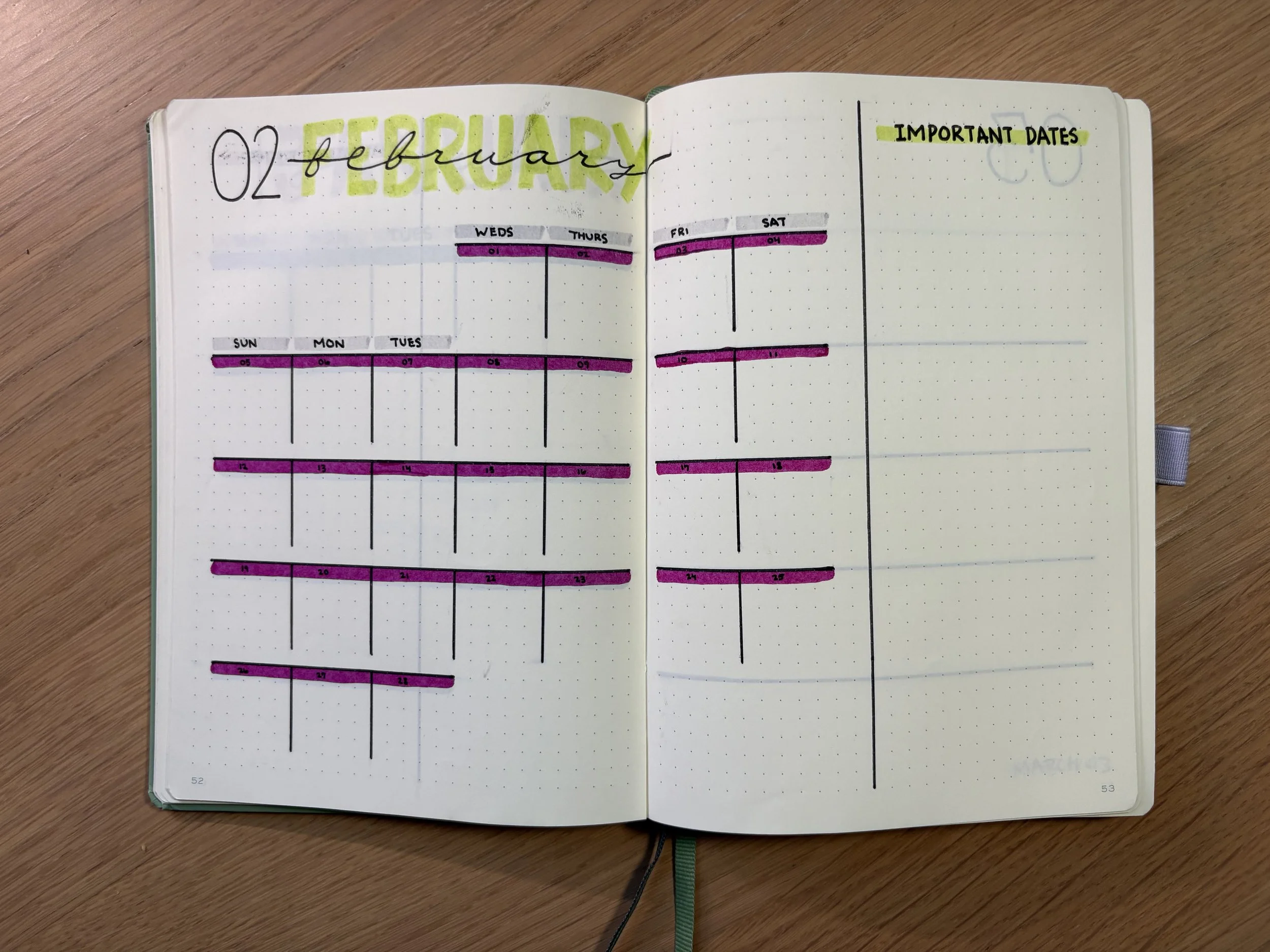 Although my journals are really designed for “the present moment”, I do also use them to plan ahead. Sometimes my notes aren’t so pretty! I experiment with different layouts. Most consistently, I like to create monthly calendars because it helps me to pause and visualize the month ahead.