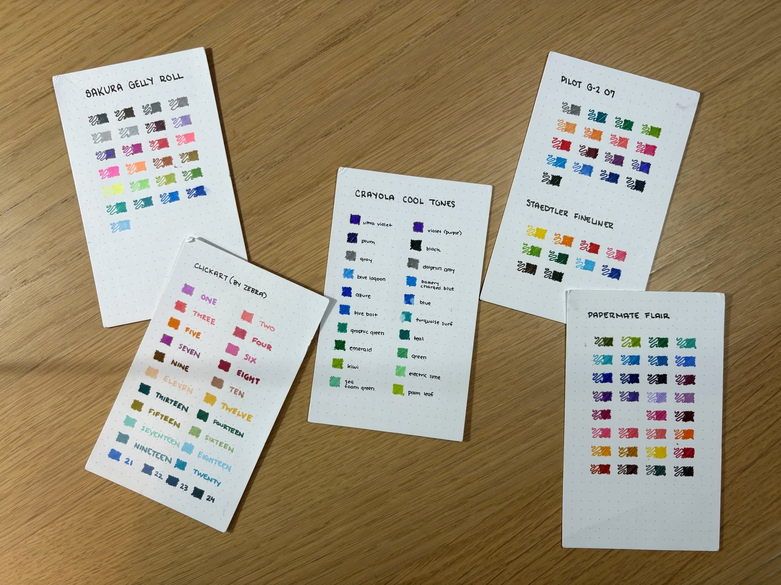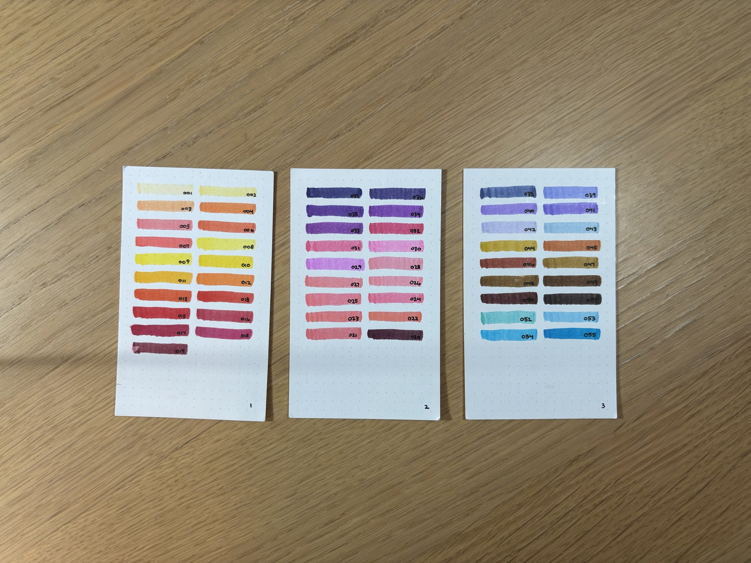 Why I love the color swatches of my preferred markers and pens: